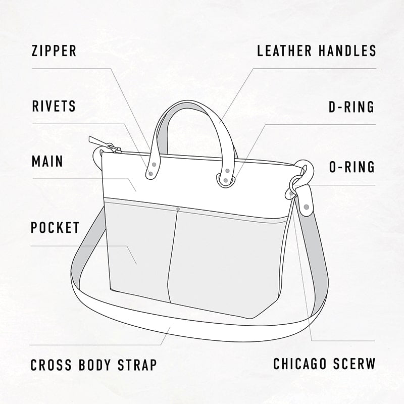 The Fremont Crossbody Tote has double-cap rivets, which can be set with just a regular hammer. Optionally, you can use a double-cap rivet setter and a (non-rubber!) mallet on a hard surface, such as a slab of stone, metal anvil, or concrete floor. To make holes in fabric you’ll need two drive punches: a 3/32” drive punch for rivets and a 3/16" drive punch for Chicago Screws, which are used with a mallet on a cutting board.