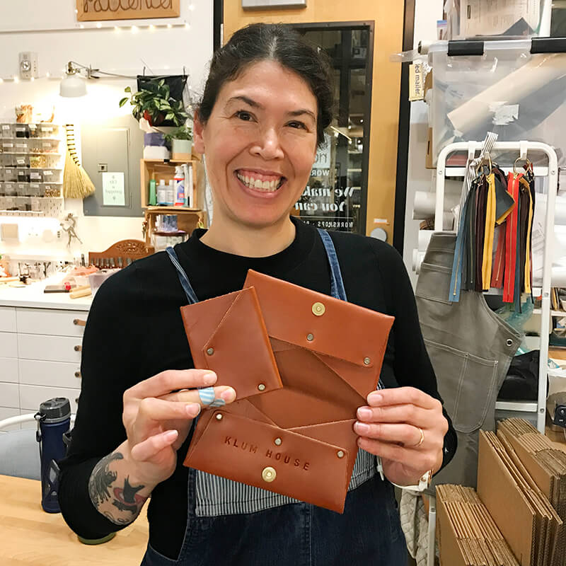 Intermediate projects involve a more in-depth making process. They'll teach you to work with a wider variety of tools and hardware techniques, like setting extra-strength tubular rivets. |