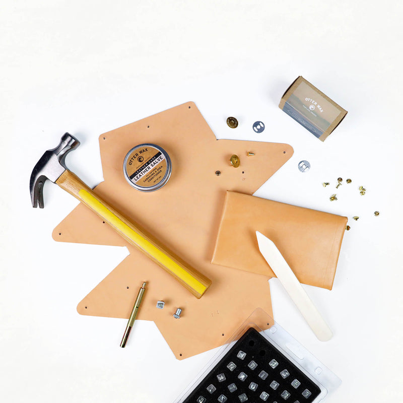 NOTE: In order to complete this project, you will also need a metal dot anvil (which can be added to your kit above), a hammer, and a hard surface. Optionally, we recommend using a bone folder to crease your leather and conditioning with leather salve for water-resistance.