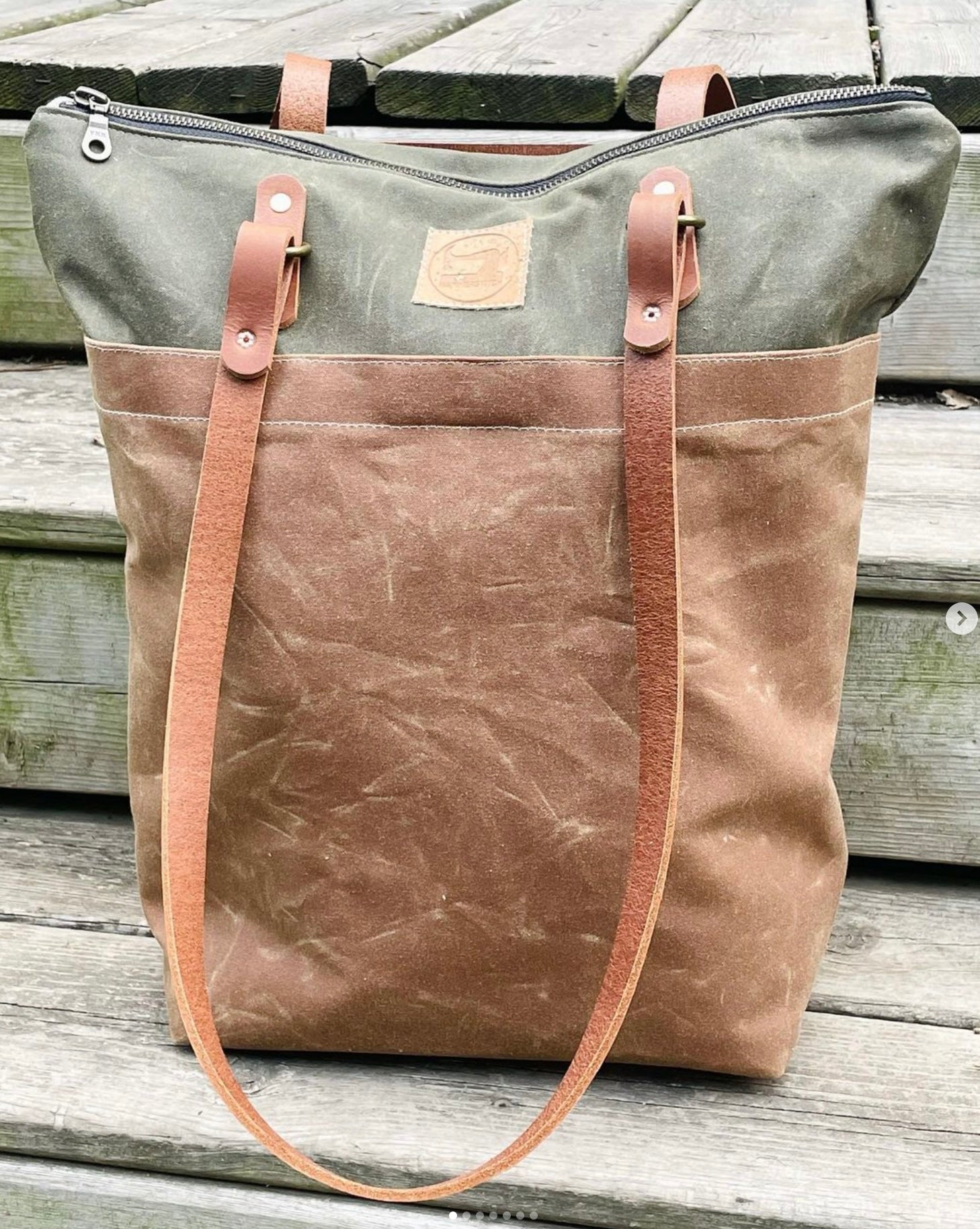 This kit includes waxed canvas fabric, natural canvas lining, pre-cut leather, hardware, a full-size paper pattern, PDF instructions booklet, and full PDF pattern. You have the option to add the online class, tools, and paper instructions booklet.