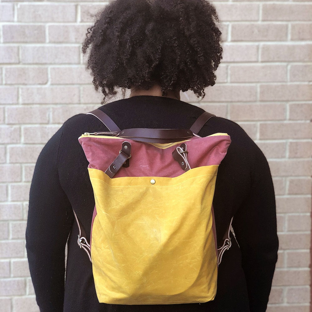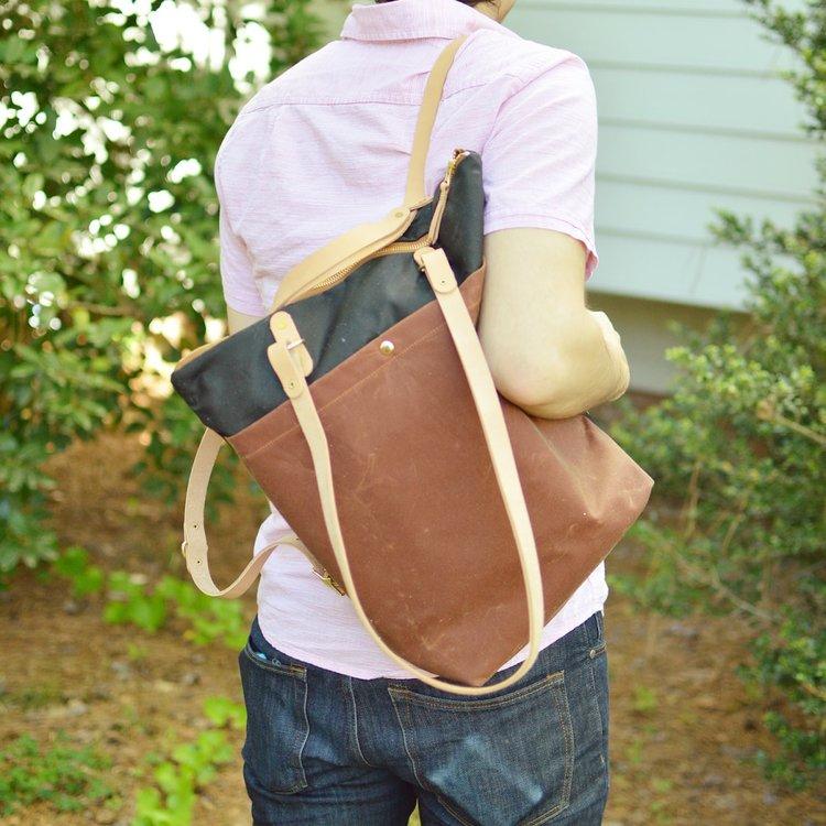 The Maywood converts from backpack to tote with the pull of a strap! This kit includes all of the ingredients you need to make this bag.