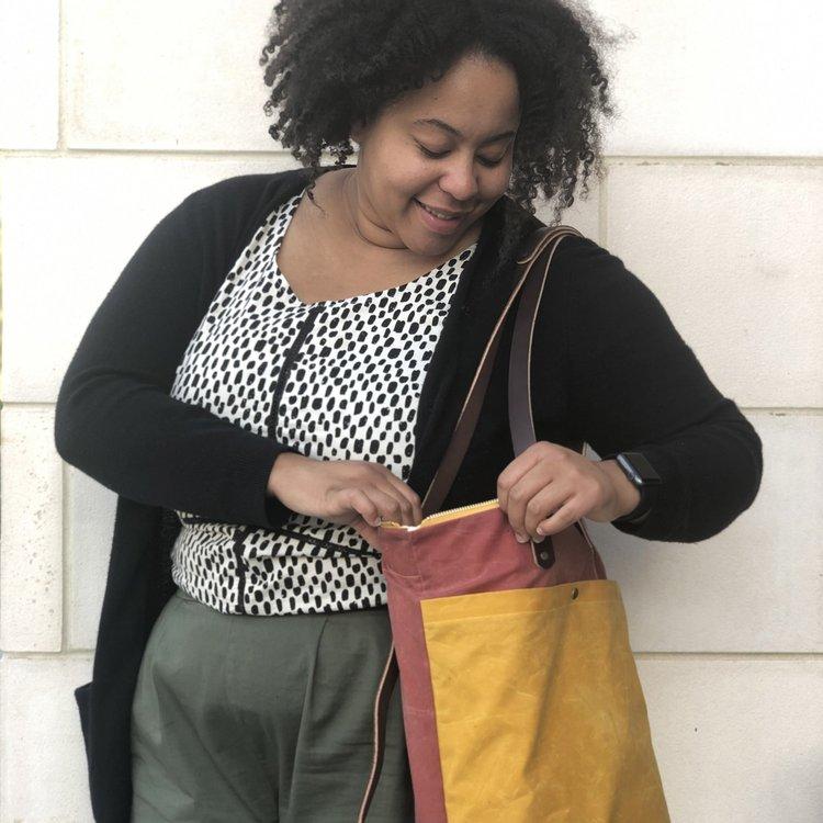 "I teach design classes and love thorough, well explained, detailed instructions. Both the pattern and the class made this build easy. The high quality kit pieces made this bag a dream to make."