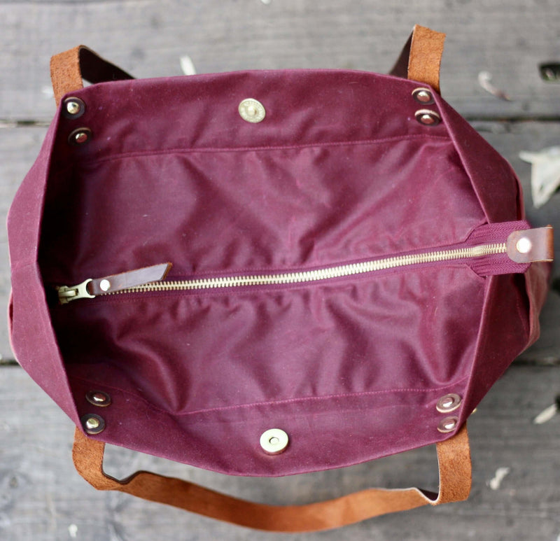 "I'm so happy with my tote!!! This is going to become my favorite bag. It was a chance for me to try some things that I have wanted to for a very long time...like magnetic snaps and leather rivets and working with waxed canvas. The video resources are excellent!!! These scary techniques are de-mystified now. THANKS!!"