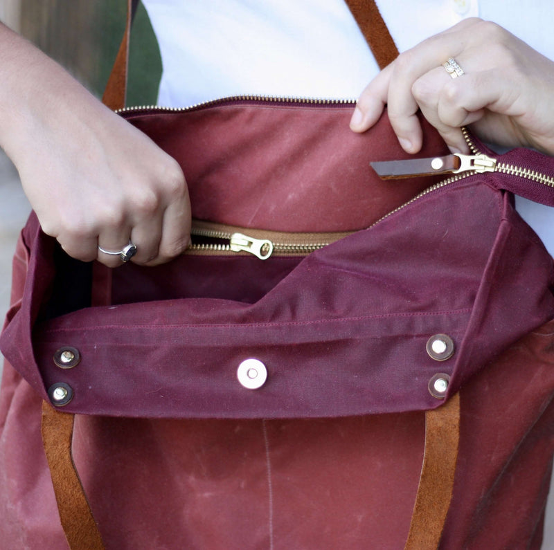The zipper closure and lining expansions are an awesome way to level up your Oberlin Tote. The zipper keeps your stuff secure, while the lining adds structure and a fun pop of color or print to the inside of your bag.