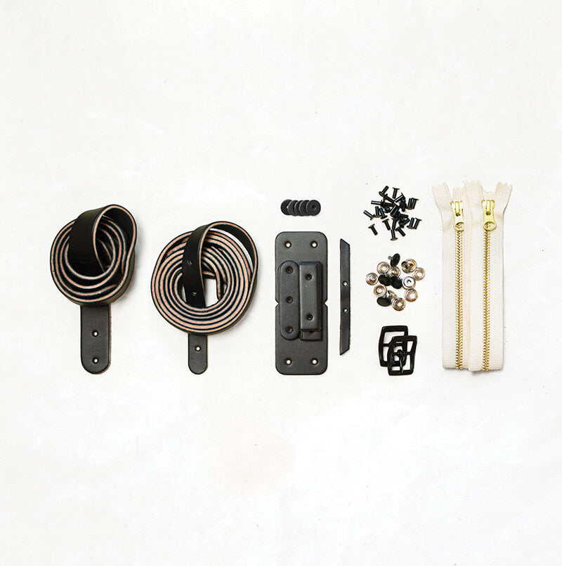 This kit includes all the leather + hardware you need to make the Slabtown Backpack.