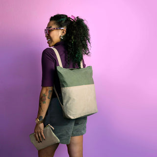 The Belmont Pack + Pouch is two projects in one! A convertible bag that tucks away inside a matching zipper pouch. This durable, all-fabric bag converts from tote to backpack and can be tucked away inside the matching zipper pouch for easy carrying. It features convertible fabric straps, a two-compartment exterior pocket, French seams, extra-strong stitches for durability, and boxed corners for plenty of carrying capacity.