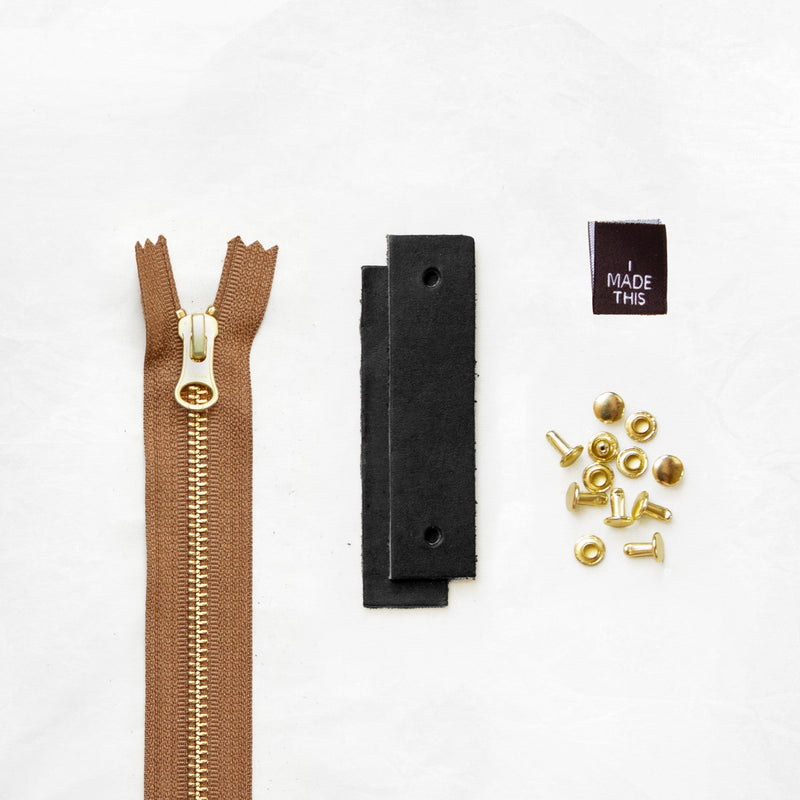 Woodland Leather + Hardware Kit - Prefer to source your own fabric? This option is for you! It comes with all the leather and hardware bits, minus the fabric.