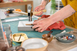 The Woodland Dopp Kit has double-cap rivets, which can be set with just a regular hammer. Optionally, you can use a double-cap rivet setter and a (non-rubber!) mallet on a hard surface, such as a slab of stone, metal anvil, or concrete floor. To make holes in fabric you’ll need a 3/32” drive punch, which is used with a mallet on a cutting board. Or you can use a tapered tailor's awl to make holes in your fabric.
